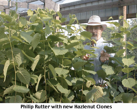 Doesn't sound too exciting? Maybe it will when you learn how many people are working to make these hybrid hazel bushes literally replace soybeans as a mainstream agricultural crop. "It's all happening far faster than I ever imagined it could." says Philip A. Rutter, President/CEO of Badgersett Research Corporation (BRC), Canton, Minnesota, the company responsible for breeding the new hybrids. "In the last year we've seen the success of the new cloning technology, formation of a growers association; now we've got machine harvest; an absolutely critical next step. And the bandwagon is starting to pick up a lot of serious passengers."